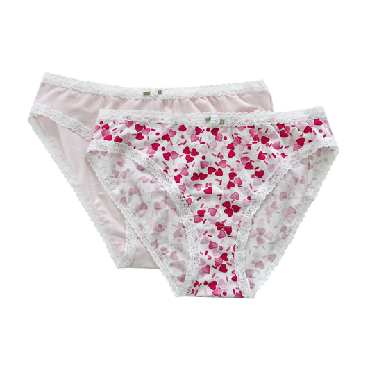 WU80 Esme Women's 2-Pack Panty Solid Color Heart Cheetah Pink Blue White